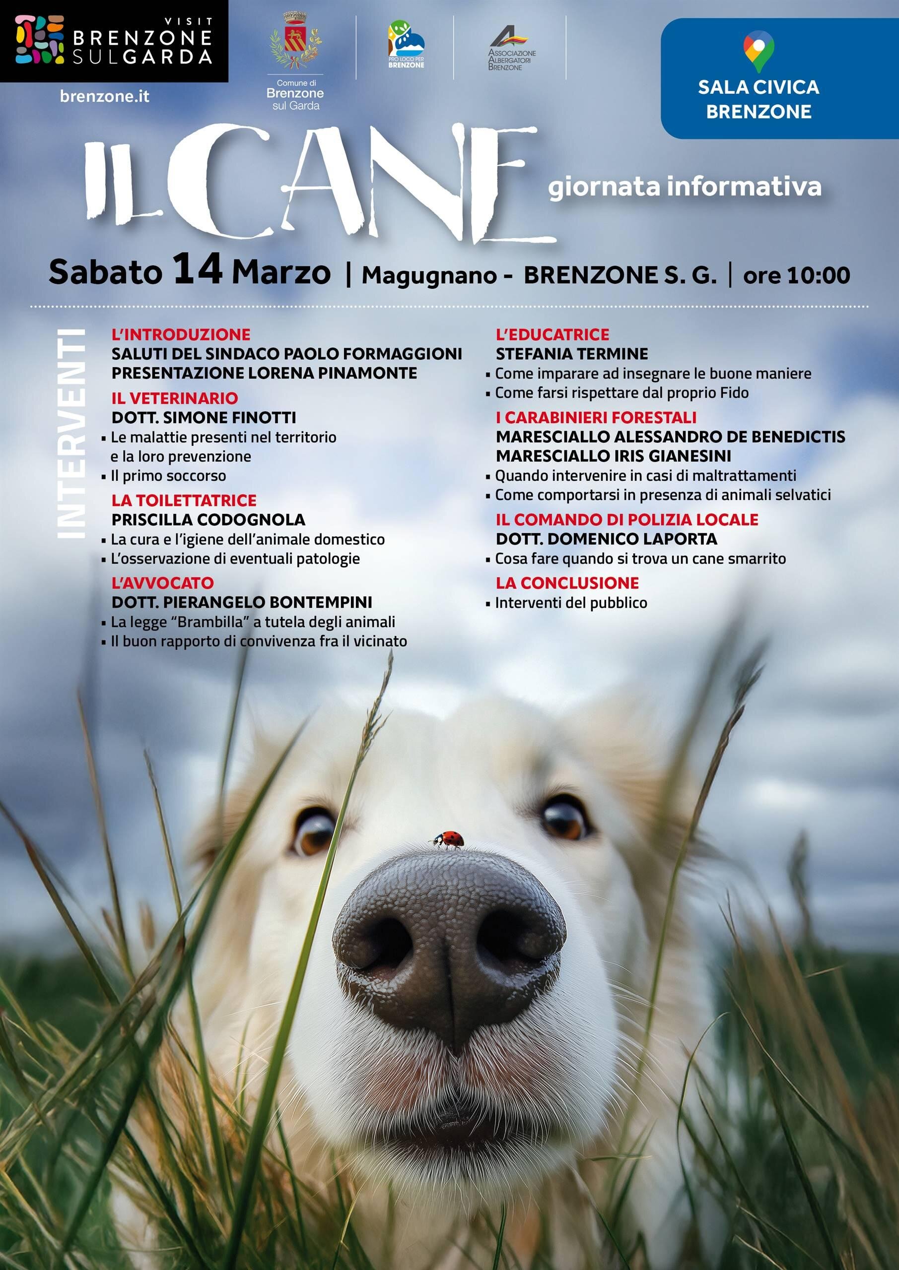 Durante l'incontro, introdotto dal Sindaco Di Brenzone sul Garda Paolo Formaggioni e dall'Assessore Lorena Pinamonte, interverranno veterinari, educatori cinofili, carabinieri forestali, che offriranno consigli utili su come comportarsi correttamente con un cane, comprendendone i bisogni e gestirlo in modo responsabile e interventi che illustreranno le corrette procedure da eseguire nel caso in cui si trovi un cane smarrito, come intervenire in caso di maltrattamenti o come comportarsi in presenza di animali selvatici.