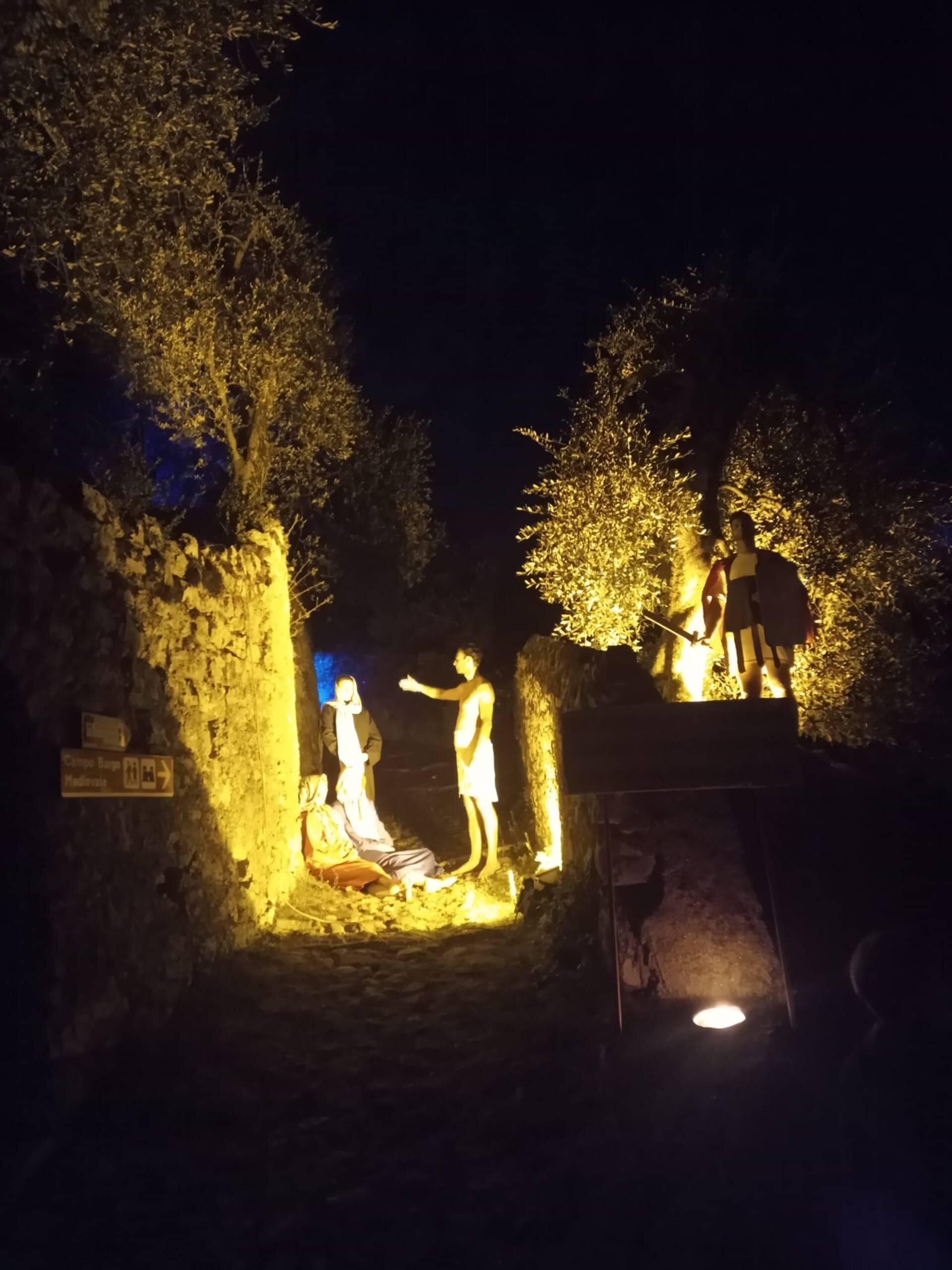 La rievocazione mistica della Passione vede partecipare molte comparse tra gli abitanti di Brenzone coordinate in un vero e proprio spettacolo teatrale e unico per vivere il mistero pasquale tra i secolari olivi del Garda, mentre i pellegrini e visitatori sfileranno in processione lungo il tracciato illuminato per ammirare il suggestivo allestimento.