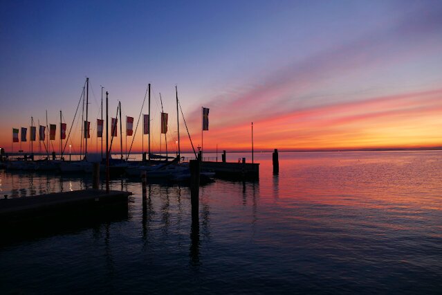 Dopo questo momento di relax e convivialità, riprenderemo il nostro percorso in E-bike, puntando verso il Lago di Garda. Ed è qui che la magia accade: gli spettacolari colori dell’imbrunire ci accompagneranno nel rientro verso Peschiera del Garda, con il riflesso dorato dell’acqua e il cielo che si spegne dolcemente su una giornata da ricordare.